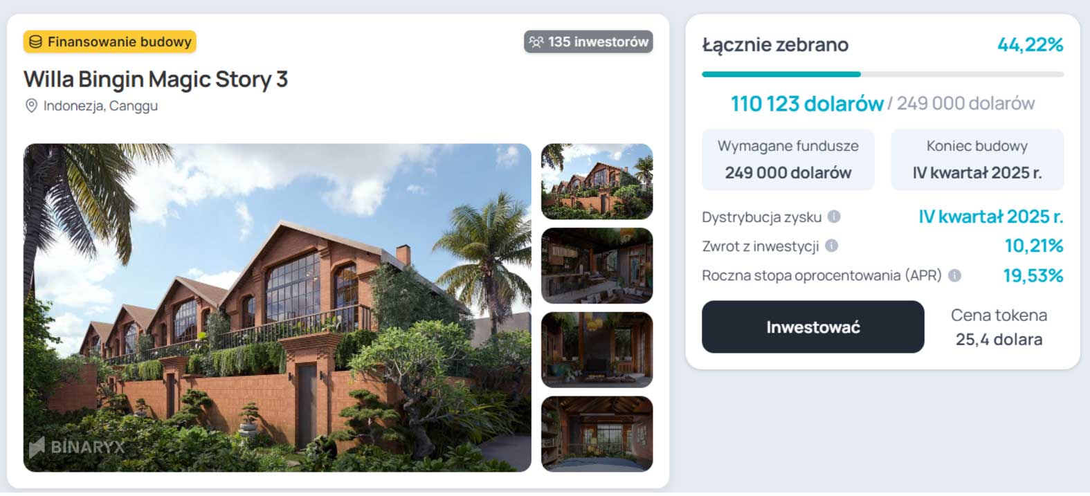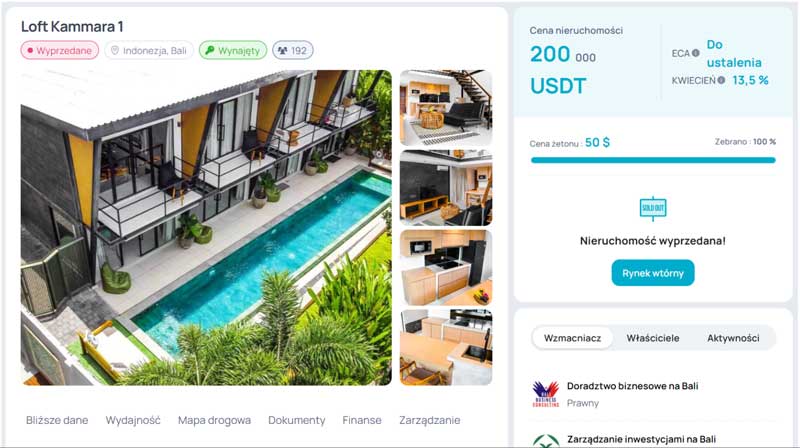 Możliwość handlu tokenami na platformieZyski z wynajmu i wzrostu wartości nieruchomości